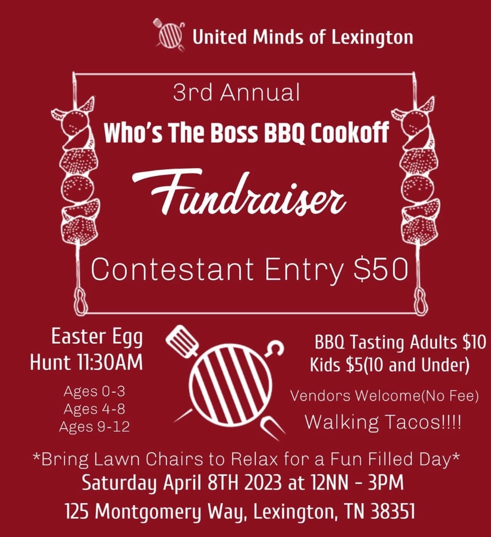 Join the United Minds of Lexington on April 8th for the 3rd annual Who's The Boss BBQ Competition.