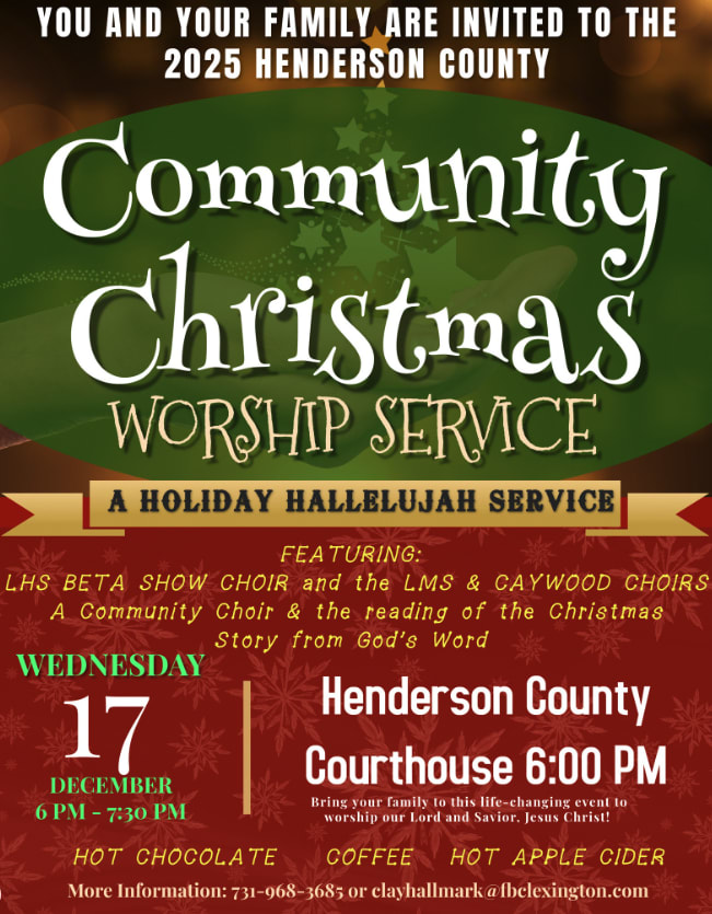 This event will feature a community choir, the LHS BETA Show Choir, the Lexington Middle School Choir, and the Caywood Elementary Choir. We will gather and sing Christmas carols together, hear the Christmas story read from God's Word by community leaders and ministers, and enjoy some hot chocolate, coffee, and hot apple cider! This is an opportunity to make special memories this Christmas and to make a difference in Henderson County!