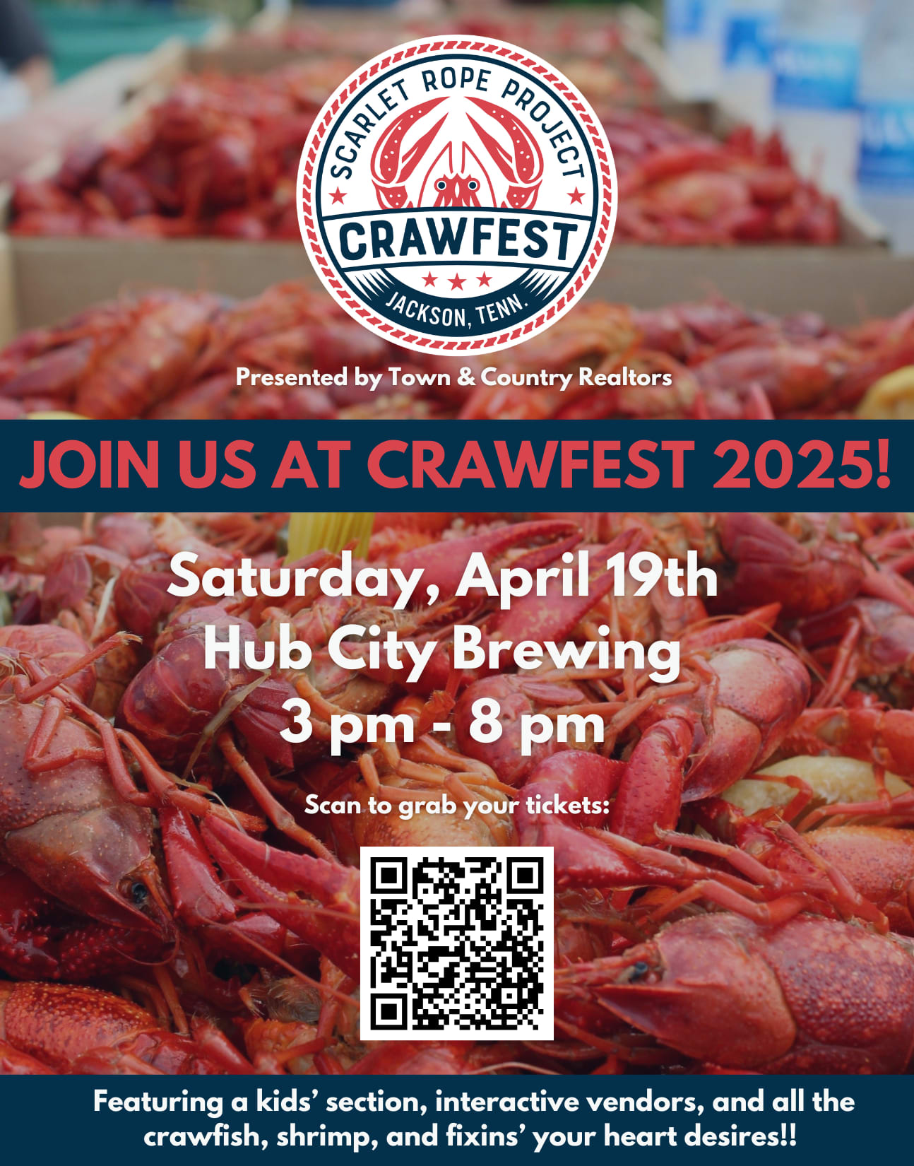 Join the Scarlet Rope Project as they present Crawfest 2025! This event will be on Saturday, April 19th at Hub City Brewing from 3pm - 8pm. Scan the QR code to purchase tickets.