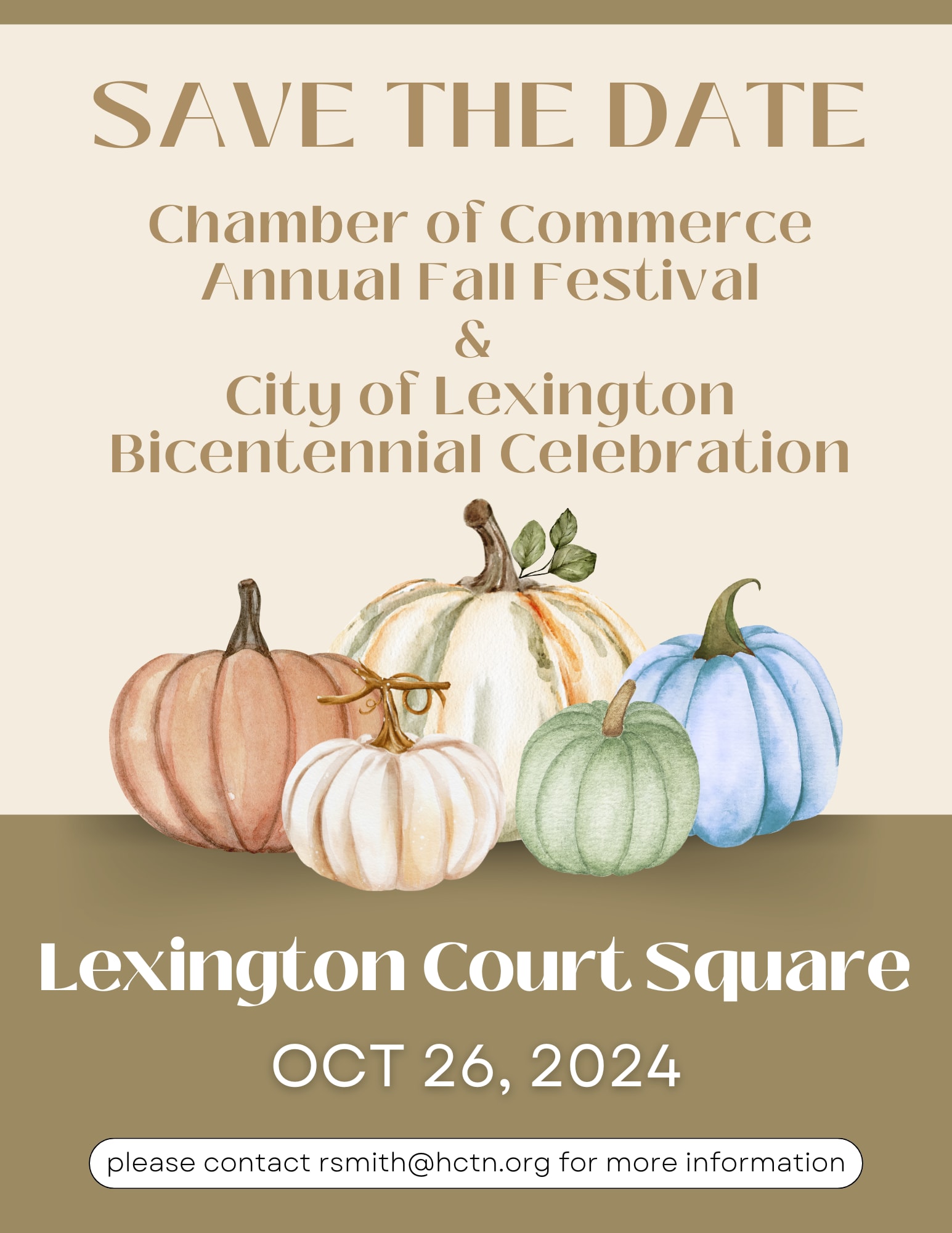 Join us for our annual Fall Festival in partnership with the City of Lexington for their Bicentennial Celebration! It is going to be a day filled with fun for the whole family - you don't want to miss the fun! Further details to be announced. Be sure to save the date and join us in this awesome community event! For questions regarding the event, food trucks, or vendor slots, please email rsmith@hctn.org
