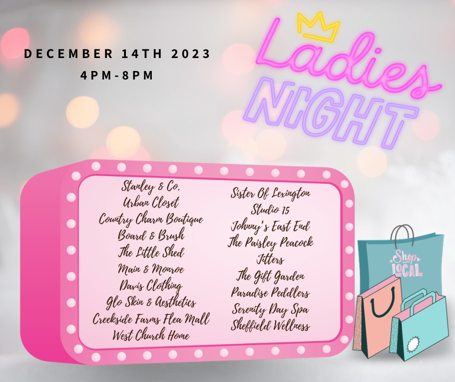 Henderson County Small Business LADIES NIGHT OUT! Shop local stores for deals, sales, giveaways, and much more! (4PM-8pm) If you are a Chamber member or potential new member please comment below if you would like to participate in event.