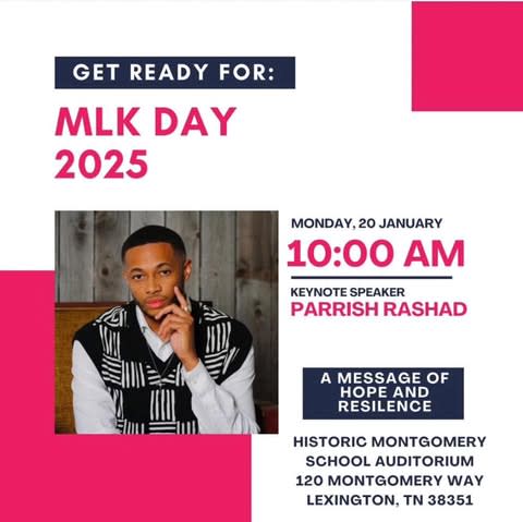Keynote Speaker: Parrish Rashad Location: 120 Montgomery Way, Lexington, TN 38351 January 20, 2025 - 10 A.M.