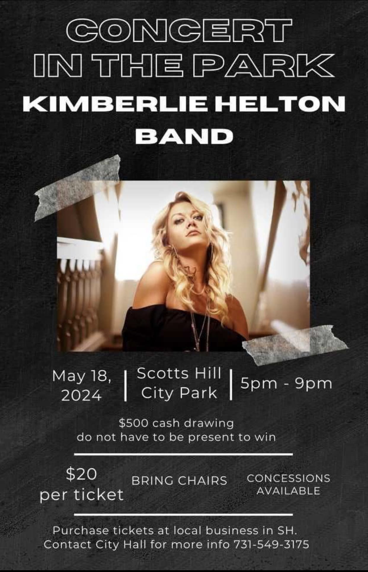 Kimberlie Helton Band is coming to Scotts Hill! Tickets are $20.00 Bring Chairs & Concessions available.